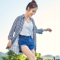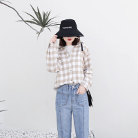 YIBUSHENG格子衬衫女早秋新款设计感小众宽松长袖薄款外套复古港风休闲衬衣