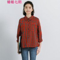 YIBUSHENG磨毛格子衬衫女复古设计感小众宽松2021年春秋装新款长袖叠穿外穿
