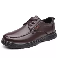 男士真皮商务休闲皮鞋男潮新款系带男鞋头层牛皮中老年爸爸鞋
