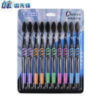 健牌10支单独装竹炭细毛软毛牙刷成人竹炭家用细毛牙刷男女细软家庭装黑色10支装