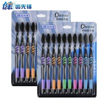 健牌10支装竹炭细毛软毛牙刷成人竹炭家用细毛牙刷男女细软家庭装10只装