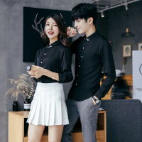 UYUK衬衫情侣装2017秋冬新款韩版修身男女打底衫纯色结婚照学生班服工作服情侣装