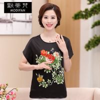 默蒂梵中老年女装夏装上衣妈妈装40-50中年大码宽松桑蚕丝短袖T恤