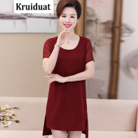Kruidvat中年真丝短袖女装连衣裙宽松妈妈装不规则桑蚕丝裙子Z010