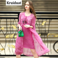 Kruidvat2017春夏女装新款刺绣炒色做旧大码真丝连衣裙B021玫粉色