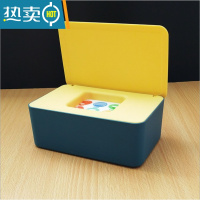敬平家用口罩收纳盒大容量纸巾盒湿巾盒客厅防尘带盖手套湿纸巾抽纸盒 黄色盖+宝蓝盒