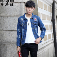 丹杰仕牛仔外套男长袖秋冬季新款男装学生休闲韩版修身男生外套破洞潮