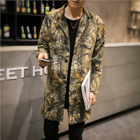 莞馨(wanxin)新款男风衣外套韩版修身中长款秋冬衣服潮青少年学生时尚迷彩潮流上衣