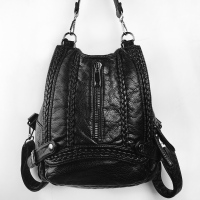 娉语秋冬新款软皮双肩包pu洗水皮女包 韩版编织多功能背包单肩