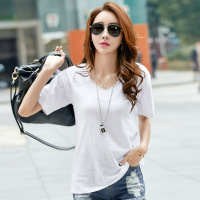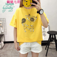 韩版学生白色刺绣短袖T恤女潮夏装半袖新款原宿BF宽松情侣装新款夏男女士汗衫简约上衣小清新半袖体恤情侣打底衫