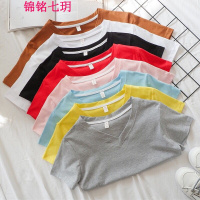 韩雅俏(HANYAQIAO)2018新品春夏季新款韩版宽松雪纺衫女装短款短袖半袖打底衫女