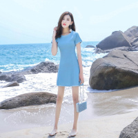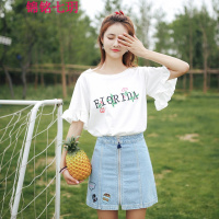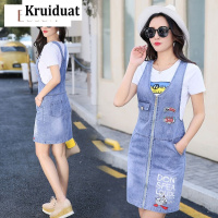 Kruidvat2017夏季新款女装韩版圆领短袖T恤+背带牛仔连衣裙套装图片色