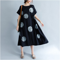 2017夏季新款大码女装韩版胖MM宽松短袖连衣裙黑色