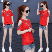 休闲打底衫上衣女修身短袖T恤女夏条纹韩版学生圆领女装