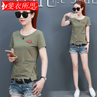 锦铭七玥刺绣衣服女2018夏季新款韩版喇叭袖短袖T恤女士上衣女装