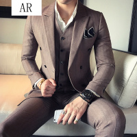 双排扣开叉套装西服男士商务西装韩版修身正装婚礼结婚西服套西男