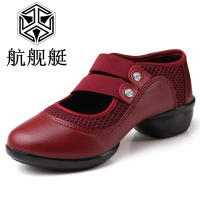 秋季新款透气中老年人女广场舞蹈鞋现代舞软底增高妈妈健身红色跳舞网面鞋