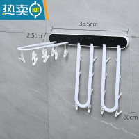 敬平免打孔折叠晾衣架壁挂式夹子晾衣夹阳台卫生间晒内衣内裤袜子器 三格黑色[12夹] 1个