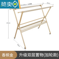 敬平晾衣架落地折叠室内阳台家用凉衣杆室外移动晒被子器伸缩晒衣架 香槟金升级款_1.53-2.5米伸缩杆+加固杆+置物架