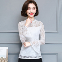 微胖MM蕾丝衫2017秋装新款大码韩版立领时尚修身长袖打底衫女上衣