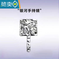 敬平网红高级感手持化妆镜家用复古ins风镜子女随身便携手拿美容镜 手持化妆镜银色+黑色印花便携式用镜
