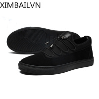品牌2017新款休闲鞋磨砂全黑色板鞋男士夏季小黑鞋英伦潮流套脚鞋子男黑色38标准皮鞋码比运