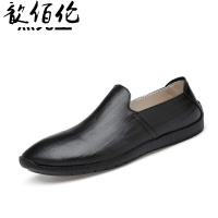品牌夏季尖头皮鞋男真皮英伦休闲鞋潮流男士豆豆鞋软底软一脚蹬懒人鞋黑色37脚胖脚宽加大一码