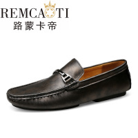 路蒙卡帝新款软面真皮休闲鞋男士橡胶底套脚懒人鞋耐磨防臭皮鞋3647码鞋