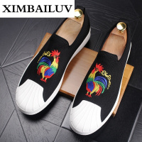 路蒙卡帝品牌欧洲站男日常休闲鞋套脚男士透气乐福鞋内增高一脚蹬绣花皮鞋板鞋青年百搭潮流运动鞋P