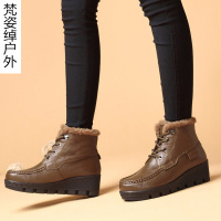 冬季新款时尚短靴中年女鞋坡跟妈妈鞋软底加绒防滑保暖皮鞋女棉鞋
