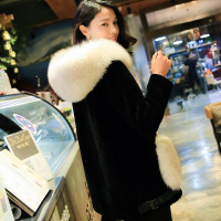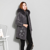 新款羊剪绒大衣女外套皮毛皮草中长款进口狐狸毛连帽外套
