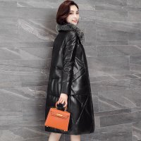 真皮羽绒服皮衣女长款绵羊皮狐狸毛皮草外套连帽新款