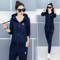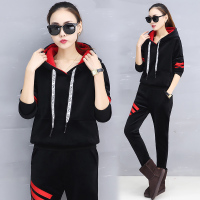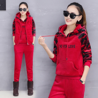 2017秋冬季新款韩版金丝绒休闲运动服套装女装加绒加厚卫衣三件套