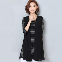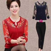 长袖上衣裤子中年人针织雪纺两件套中老年女装秋装套装妈妈装秋季
