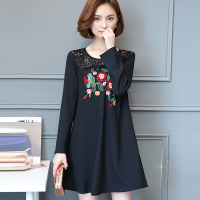 大码显瘦女装打底裙2017秋季新款胖MM刺绣蕾丝镂空长袖女连衣裙潮