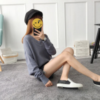 韩依莉 2017秋装新款韩版百搭宽松女装 秋季宽松V领毛衣女