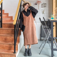 YIBUSHENG装茶系穿搭一整套女装大码胖mm韩系牛仔背带连衣裙洋气减龄套装