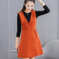 YIBUSHENG新款假两件背带裙子2022季新款大码女装撞色拼接中长款连衣裙潮