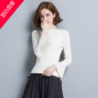 一字肩毛衣个性女冬潮款套头针织衫长袖打底衫时尚紧身喇叭袖上衣