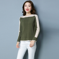 冬季款女装拼色一字领毛衣女套头韩版时尚短款针织衫上衣打底衫厚