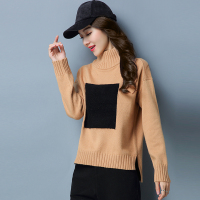 前短后长立领毛衣上衣女开叉套头长袖韩版加厚半高领宽松打底线衫