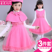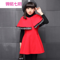 锦铭七玥女童秋冬装2017新款中大儿童装韩版甜美女孩连衣裙披肩套装潮