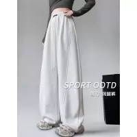 白灰色美式运动裤女春秋新款高腰拖地卫裤宽松休闲直筒阔腿裤