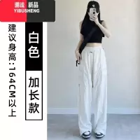 YIBUSHENG美式复古松紧腰工装休闲裤女季宽松白色阔腿裤拖地裤百搭长裤子