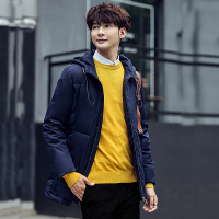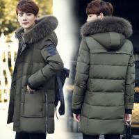 步来褶惠男士冬季连帽羽绒服青年修身中长款加厚外套日系街夏