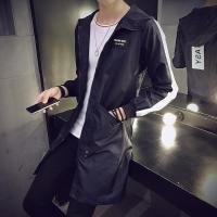 2017新款春季男士中长款风衣韩版修身连帽字母印花夹克外套2017新款大衣潮
