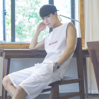 丹杰仕简约舒适两件套装无袖T恤短裤休闲套装宽松舒适文艺范居家套装小咖秀百搭潮6114