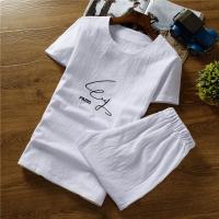 中国风刺绣男士短袖亚麻休闲套装夏季半袖五分裤大裤衩男装2017潮