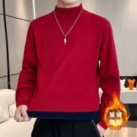 一体绒半高领毛衣男士针织衫纯色韩版潮流秋冬针织打底衫