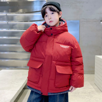 男童冬装羽绒棉服新款男孩加绒红色棉衣年服中大童棉袄冬季